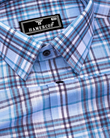 This Beloit Blue With White Check Linen Cotton Shirt combines the perfect blend of comfort and style. Crafted from a breathable linen-cotton fabric, it offers a lightweight feel that's ideal for warm weather. The classic blue and white checkered pattern adds a timeless touch, while the relaxed fit ensures easy movement and a laid-back look. Whether worn casually with jeans or dressed up with chinos, this shirt is versatile enough for any occasion. Its natural fabric blend makes it both soft to the touch and easy to care for, making it a must-have addition to your wardrobe.