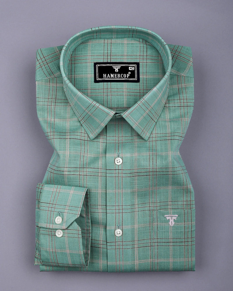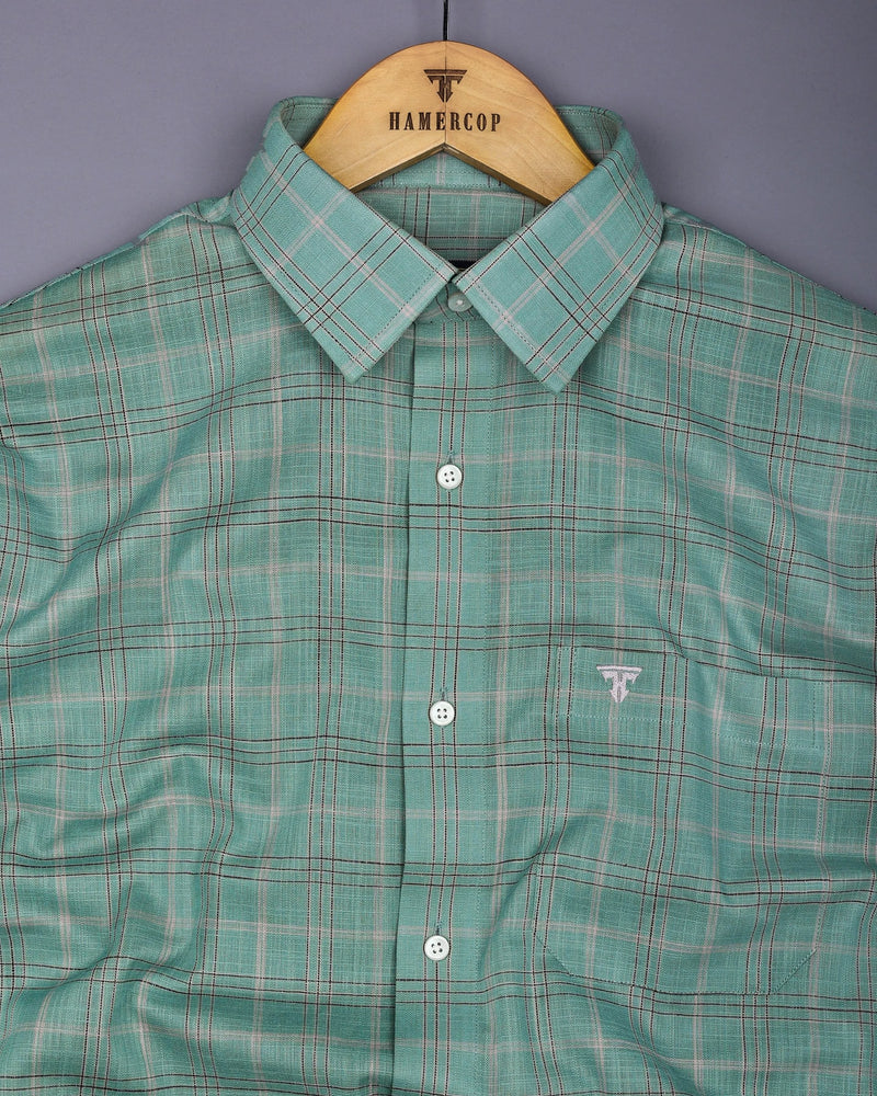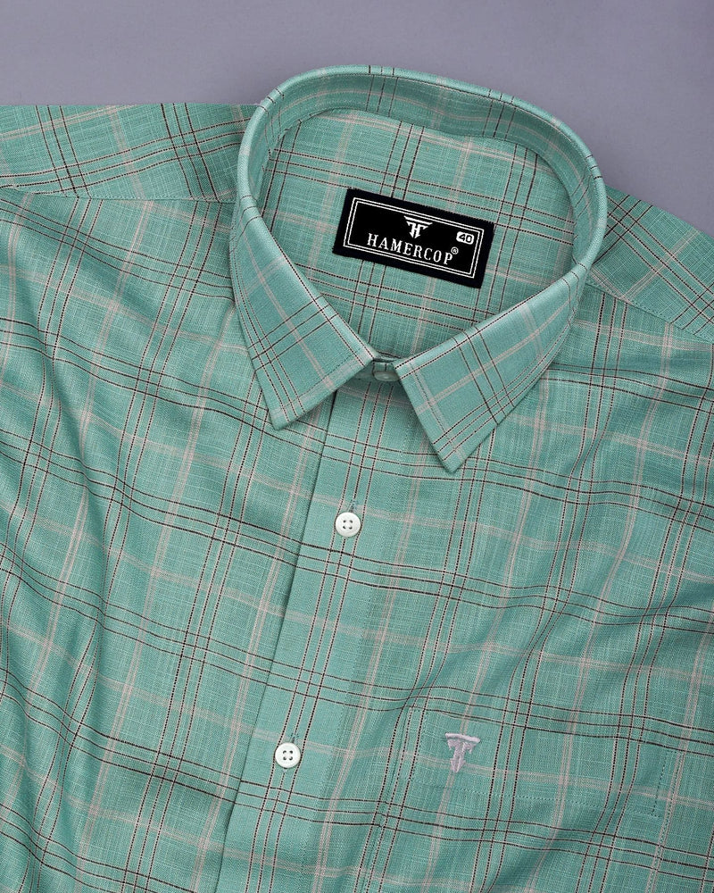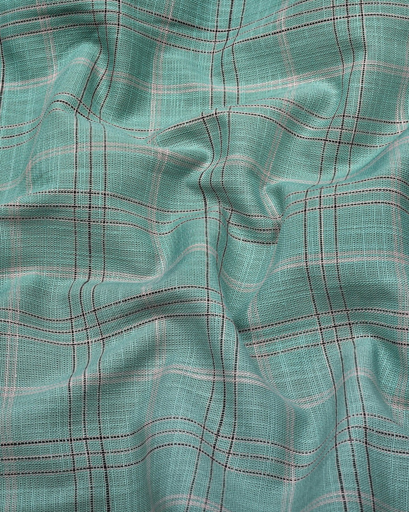 Looking for a professional and stylish shirt, This Hybrid Green With Gray Check Linen Cotton Shirt effortlessly blends style and comfort, making it an ideal addition to any wardrobe. The lightweight linen-cotton fabric ensures breathability and softness. Featuring a classic green and gray checkered pattern, the shirt offers a timeless, versatile design that pairs well with semi-formal looks. Perfect for everyday wear, this shirt is ideal for both laid-back weekends and more polished, professional occasions.