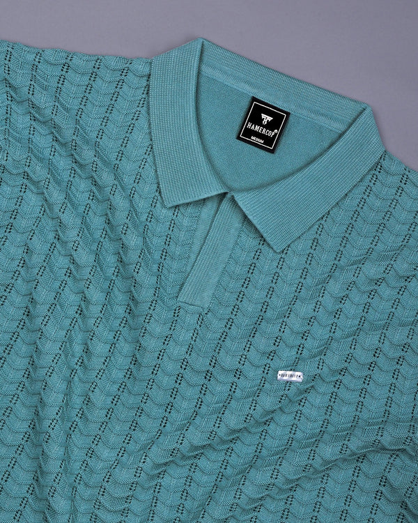Presenting a polo that's good on you, crafted with classic polo collar, offering a timeless silhouette in a single jersey structure. Elevate your casual wardrobe with this stylish Ozone Steel Blue Knitted Cotton Polo T-Shirt. Crafted from a soft, breathable fabric, this polo features a unique cotton texture that adds a touch of sophistication and depth. This Ozone Steel Blue Knitted Cotton Polo T-Shirt combines comfort with style, making it a versatile addition to any wardrobe. A beautiful blend of cotton gives this tee its smooth feel and breathability. The cotton is uniquely suited to regulating temperature, so it will ensure you don't overheat.