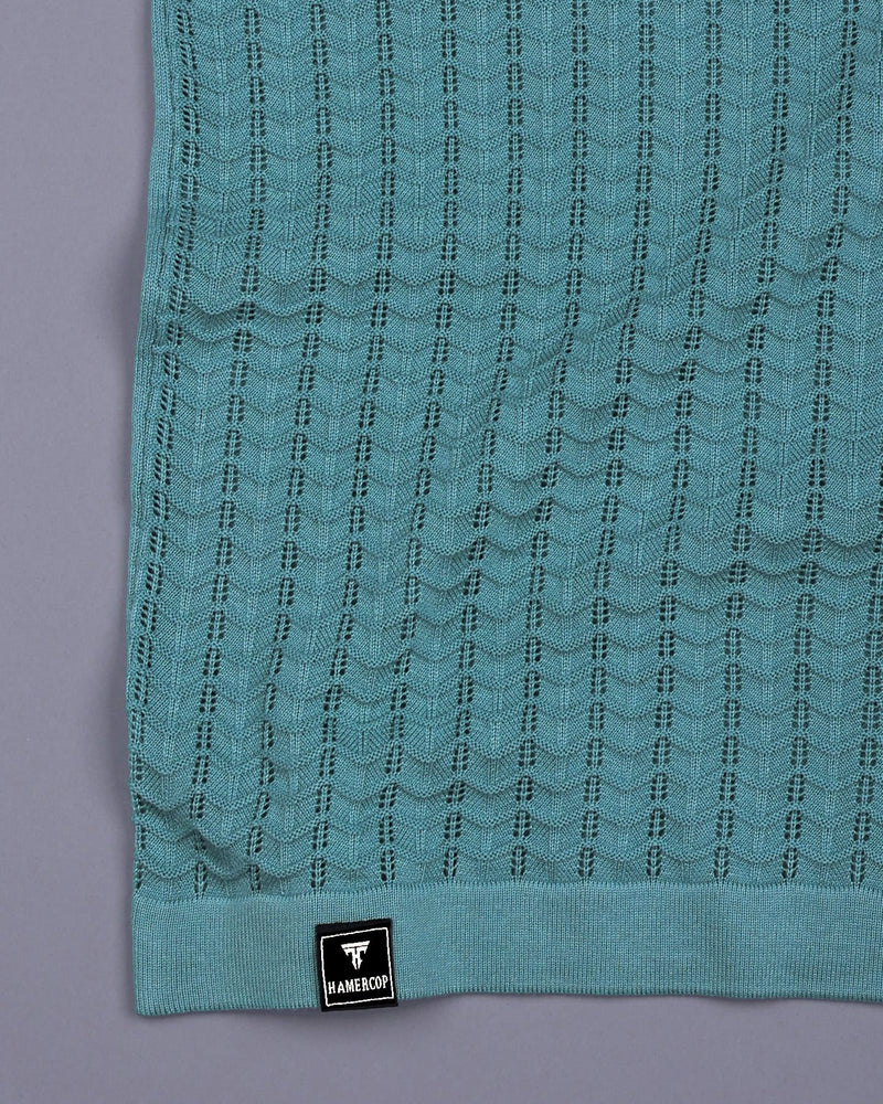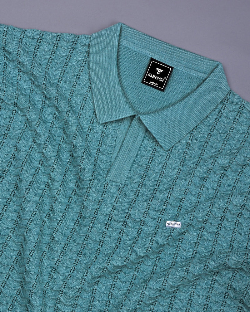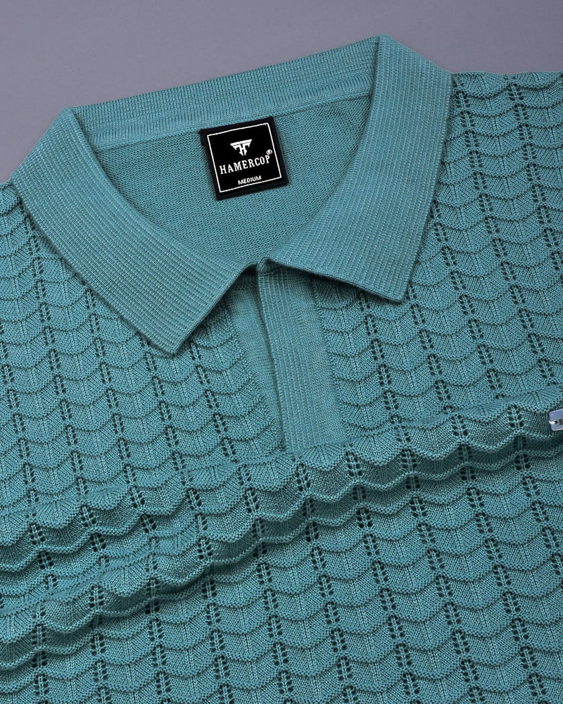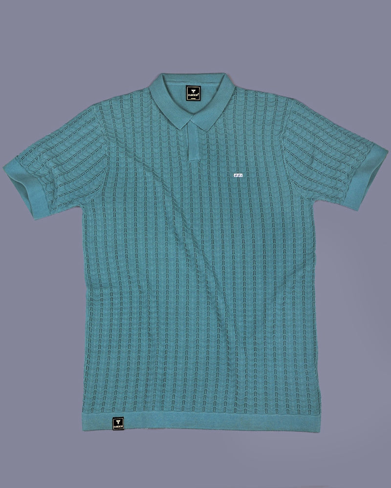 Presenting a polo that's good on you, crafted with classic polo collar, offering a timeless silhouette in a single jersey structure. Elevate your casual wardrobe with this stylish Ozone Teal Green Knitted Cotton Polo T-Shirt. Crafted from a soft, breathable fabric, this polo features a unique cotton texture that adds a touch of sophistication and depth. This Ozone Teal Green Knitted Cotton Polo T-Shirt combines comfort with style, making it a versatile addition to any wardrobe. A beautiful blend of cotton gives this tee its smooth feel and breathability. The cotton is uniquely suited to regulating temperature, so it will ensure you don't overheat.
