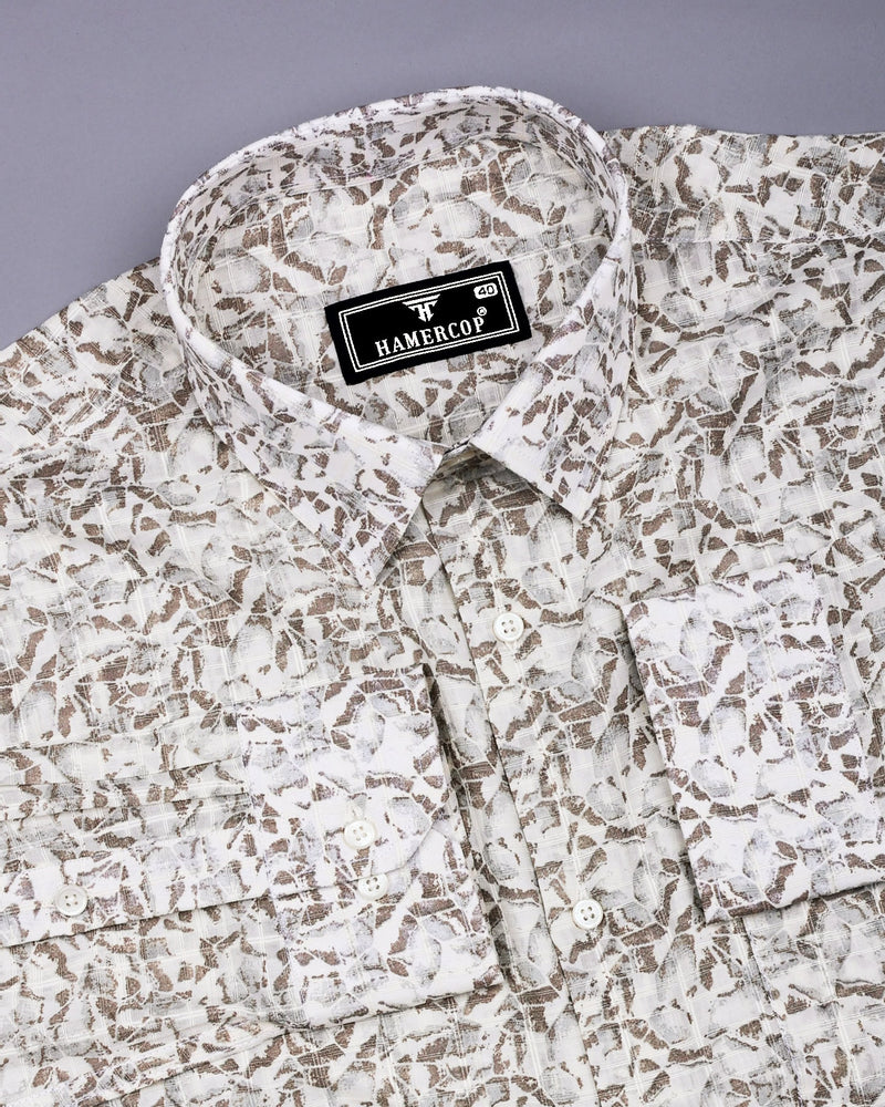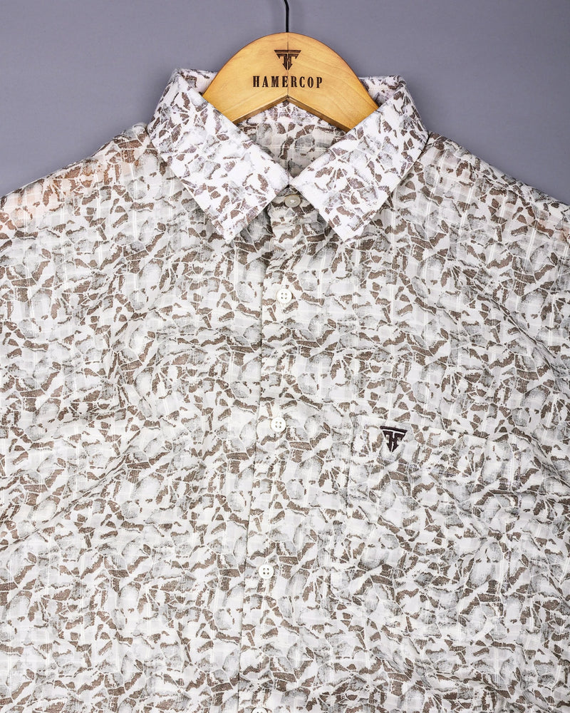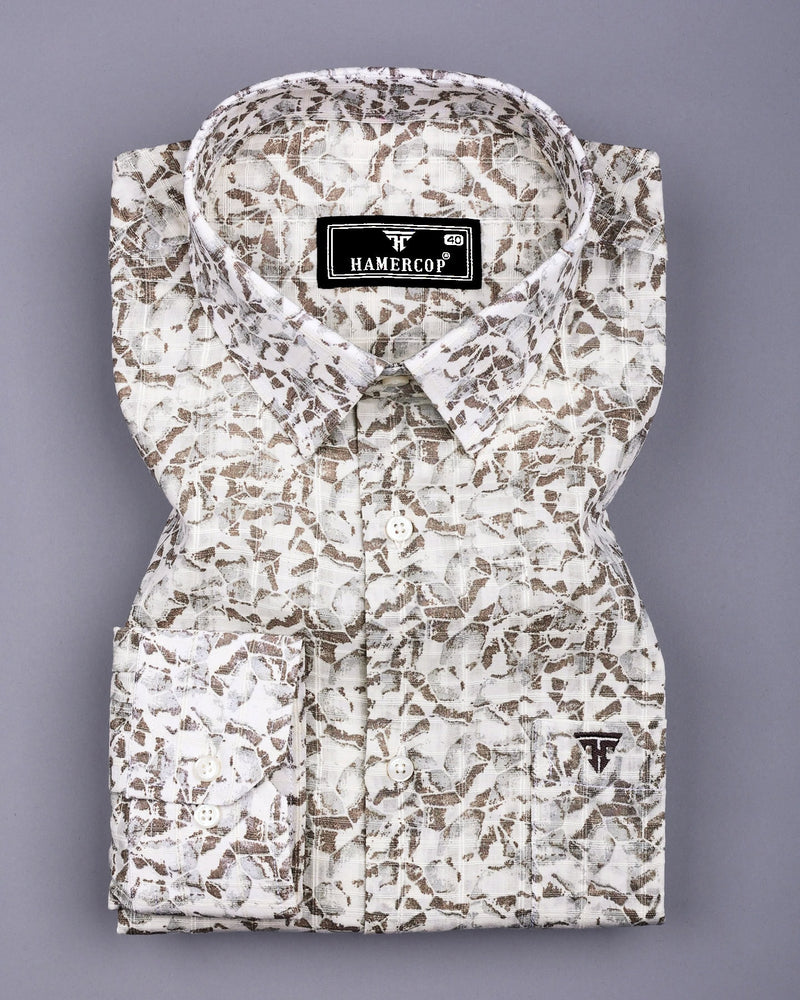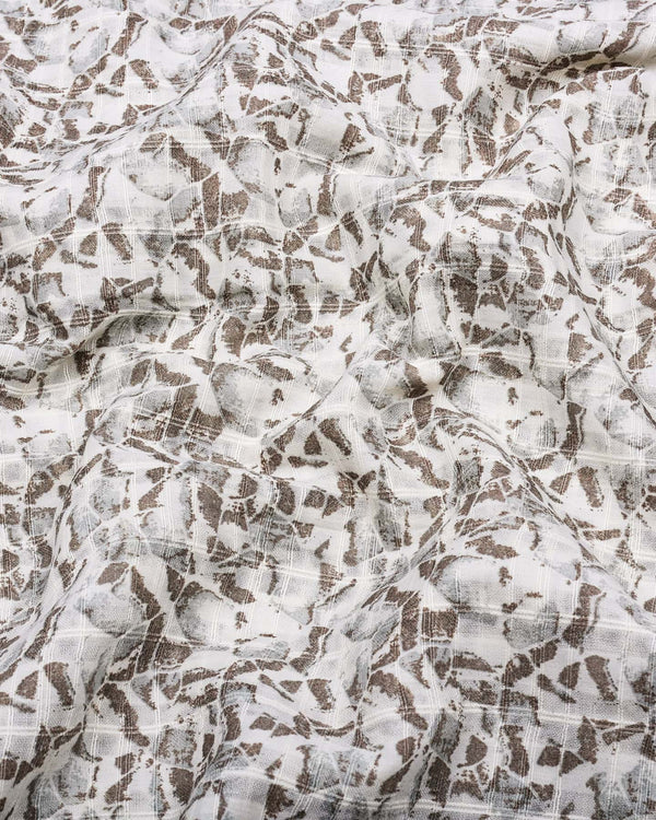 Add a touch of sophistication to your collection with this must-have piece! this Polymer Brown With Off White Printed Dobby Cotton Shirt combines style and comfort with its soft cotton and lightweight fabric and unique texture. The shirt features a subtle dobby weave, creating a textured pattern that adds depth and visual interest to the fabric. Its brown color gives it a fresh, light tone, perfect for any occasions. The breathable cotton ensures comfort throughout the day, making it ideal for warmer weather. With a regular fit, regular collar, and a clean, structured design, this shirt can be paired with both jeans and chinos for a versatile look.