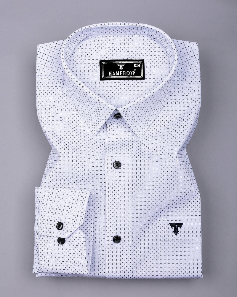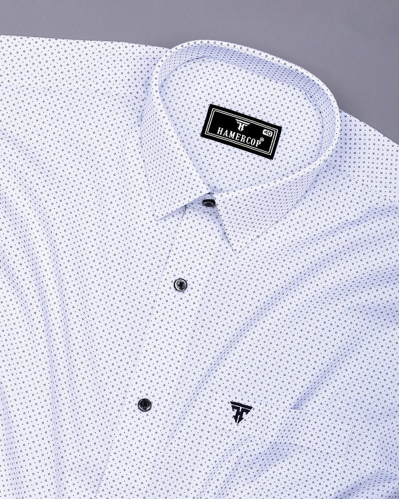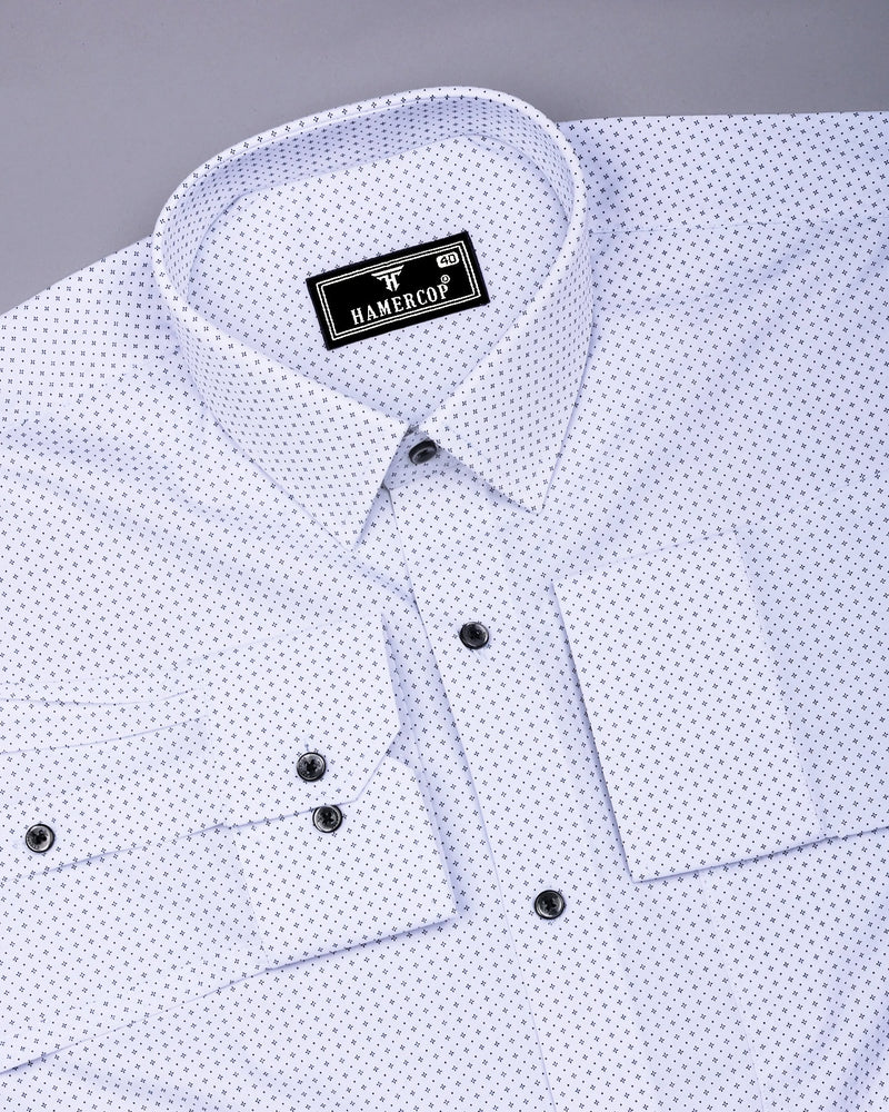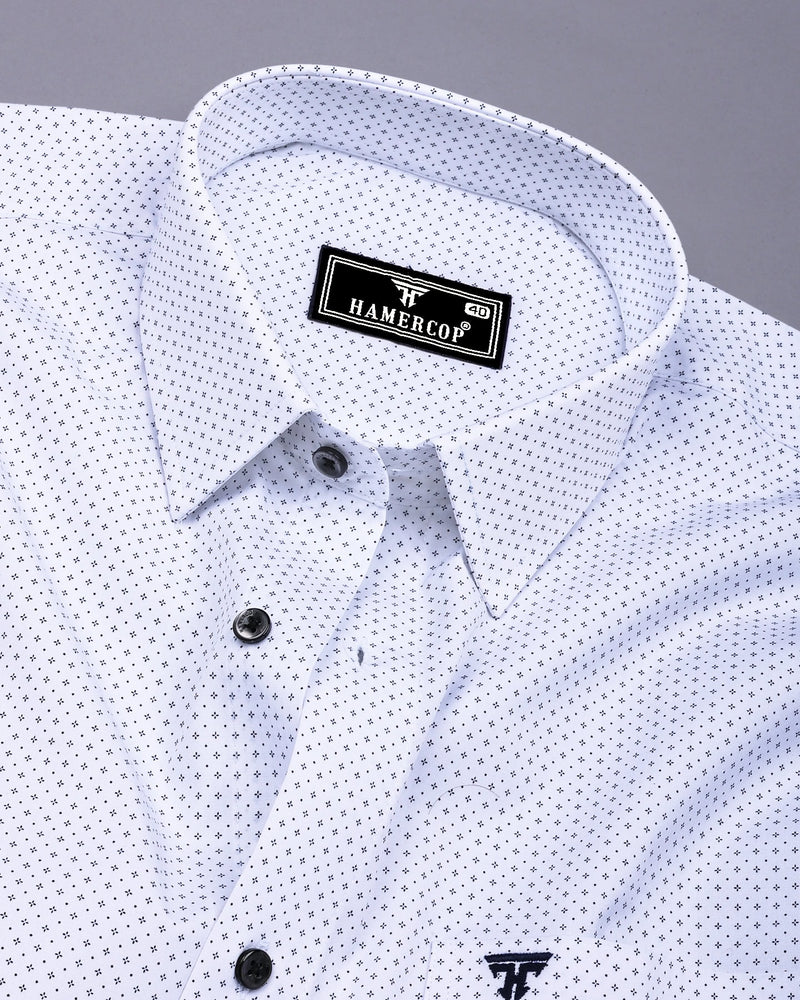 Made for everyday wear, this full and half sleeve shirt will be your new favorite basic. this White With Black Printed Formal Cotton Shirt a stylish staple for any wardrobe. This shirt is crafted from soft, breathable cotton, ensuring comfort and durability. The crisp white base is beautifully contrasted by an intricate black print, adding a touch of sophistication and flair. Featuring a classic regular collar and a regular fit, this shirt is perfect for semi-formal occasions. The lightweight fabric drapes effortlessly, making it easy to wear all day. Whether paired with chinos for a polished look or jeans for a relaxed vibe, this shirt effortlessly elevates any outfit.