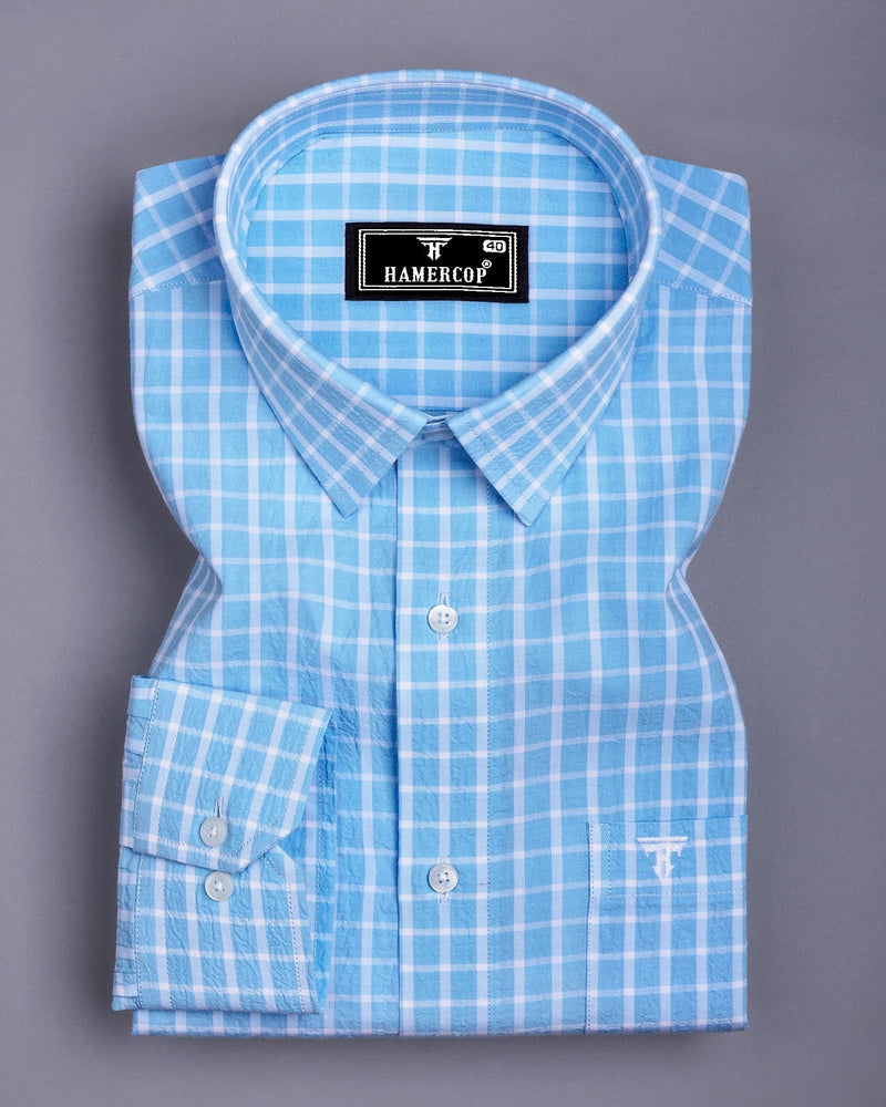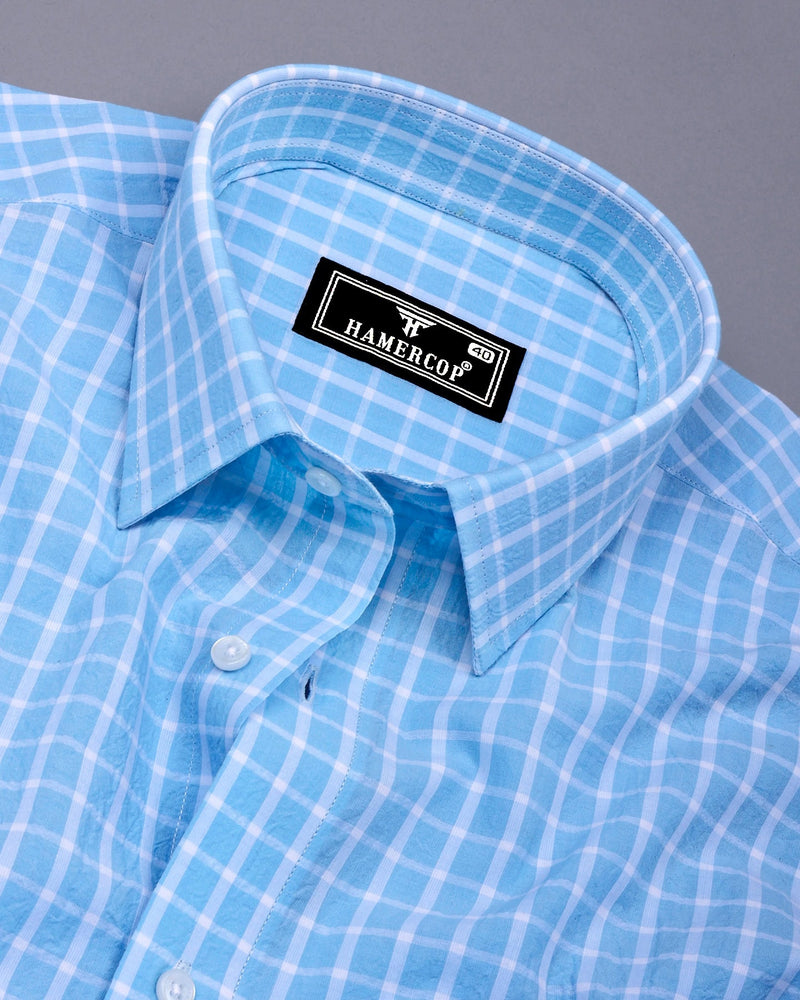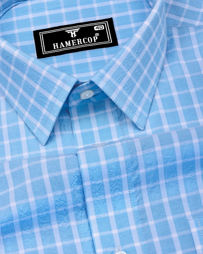 Add a touch of sophistication to your collection with this must-have piece! This Yucca Blue With White Check Seersucker Cotton Shirt offers a perfect blend of comfort and style. Crafted from lightweight, breathable seersucker cotton, it features a subtle blue color with a timeless white checkered pattern. The texture of seersucker fabric adds a touch of uniqueness, providing a cool, crisp feel that’s ideal for warmer weather. With its relaxed yet polished look, this shirt is perfect for more refined occasions. The natural cotton fabric ensures comfort throughout the day, making it a versatile addition to any wardrobe.